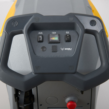 Ghibli propose une autolaveuse accompagnante très performante avec la REXA 50. Son tableau de bord minimaliste avec de simples boutons est le plus intuitif du marché. N'importe quel opérateur peut utiliser la REXA 50 sans y avoir été formé préalablement, ce qui est un vrai avantage en cas de changement non prévu d'agent de propreté. Côté caractéristiques techniques, elle a "tout d'une grande ": capacité de 50 litres, largeur de travail de 530mm, batteries gel et chargeur embarqué. Le système de changement de bavette est extrêmement rapide et ne nécessite aucun outil. La REXA 50 est la solution idéale pour ceux qui recherchent une autolaveuse compacte, efficace et ergonomique, capable de combiner des performances de nettoyage élevées avec un coût d'exploitation très modeste.